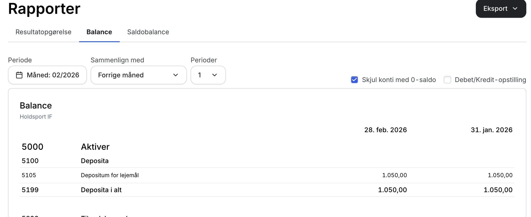 - Definer for hvilken periode du ønsker at få vist balancen.