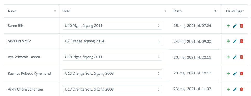 - Klubadministratorer kan håndtere anmodninger på alle hold i klubben